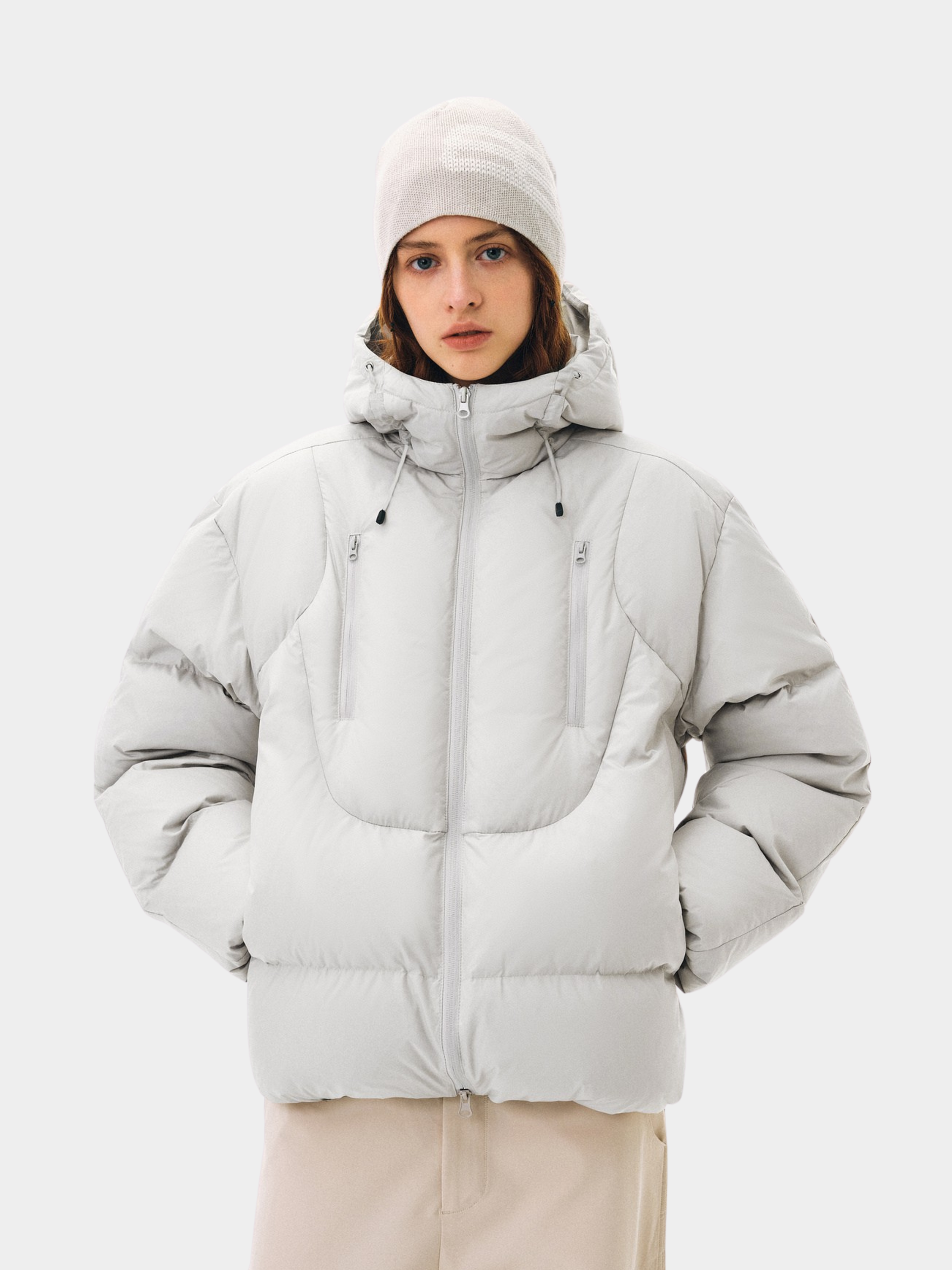 Dual-Zip Hooded Design: Adjustable for coverage and convenience, balancing protection with urban versatility.