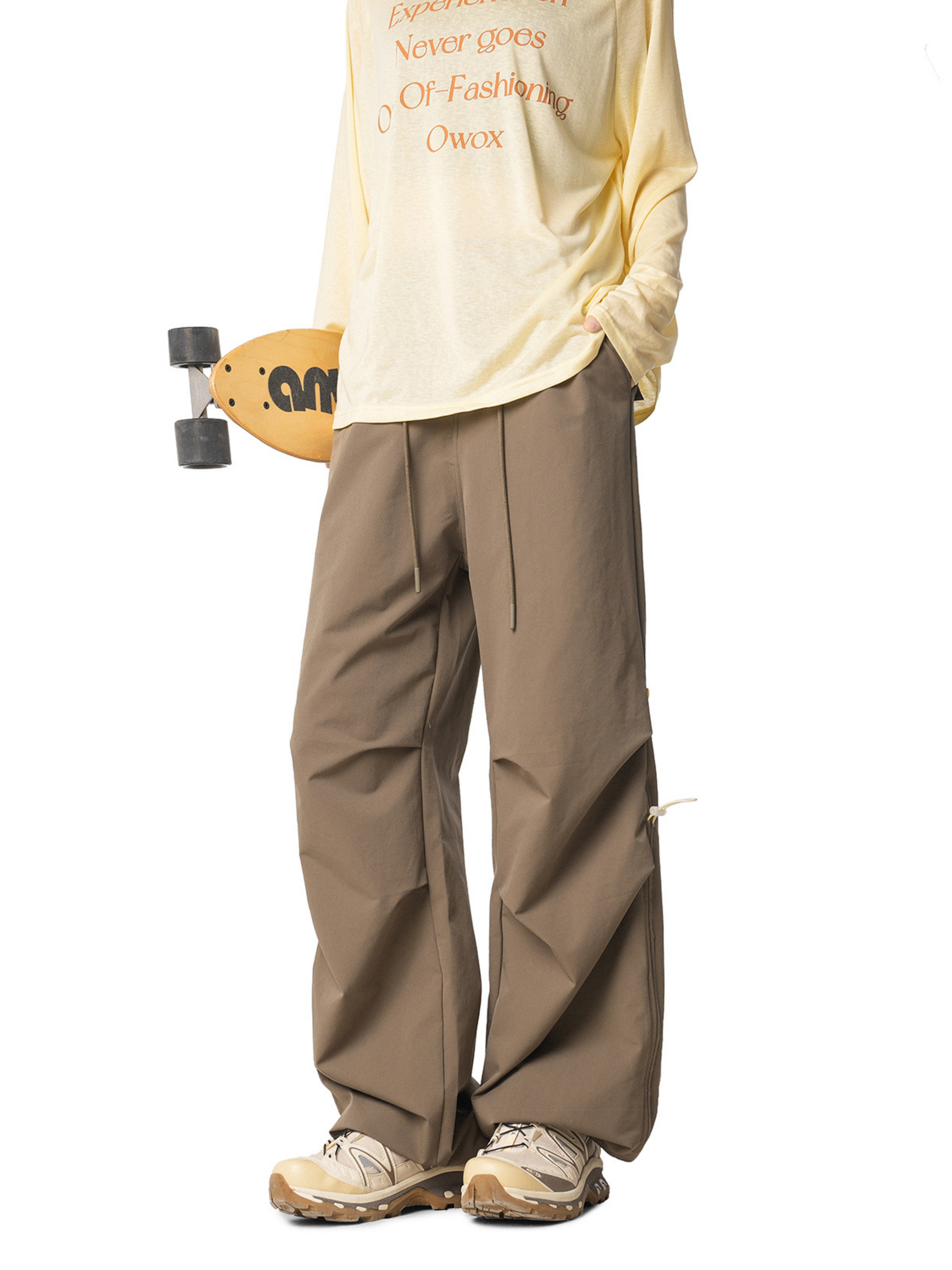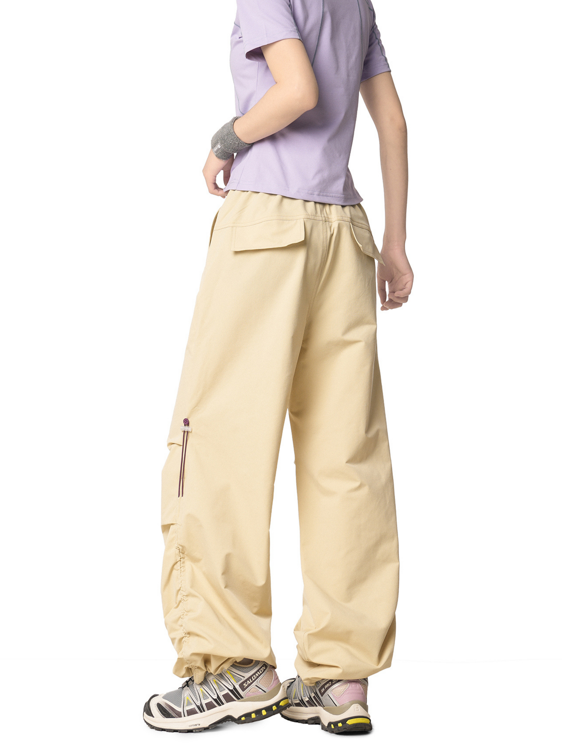 Crafted from 100% polyester, these casual cargo pants feature unique side drawstring ruching that adds volume and streetwear flair. The lightweight yet durable fabric ensures comfort and style, perfect for both daily wear and urban outdoor looks.